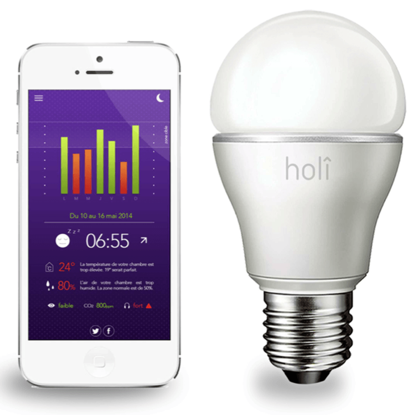 Intéressons-nous ensuite à un de ces objets connectés qui améliorent notre quotidien et présenté par la société française Holî : le Sleep Companion. Ainsi, même si les applications censées nous aider à mieux dormir ont déjà fait leur apparition il y a deux ou trois iPhones, cette technologie est cette fois couplée à un objet qui propose une véritable valeur ajoutée en terme de lumière. En effet, le bulbe lumineux Sleep Companion propose de s’adapter à votre comportement lors du coucher et du lever en offrant une lumière optimale pour lire, se détendre ou se réveiller frais comme un gardon… Quant à l’interface très intuitive qui contrôle l’appareil, elle permet également d’avoir un feedback de la nuit grâce à des capteurs de température et de bruit et de régler un réveil efficace, au meilleur moment. La combinaison de l’objet et de la technologie mise en œuvre permet en outre des fonctionnalités plus avancées, comme par exemple une fonction relaxation qui promet une véritable aide pour s’endormir, en calant votre respiration sur des oscillations lumineuses adéquates! Cette lampe nouvelle génération de chez Holî arrivera dans les magasins français en Février au pris de 79€, et peut être très bientôt chez Xantor !
