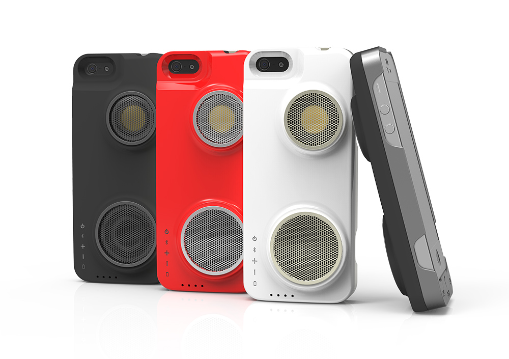 En effet, l’appareil combine ces trois fonctions devenues essentielles pour les utilisateurs inconditionnels de smartphones que nous sommes devenus… Car si les mini-enceintes Bluetooth et les chargeurs transportables sont légion depuis déjà un moment, aucune marque n’avait eu jusqu’à présent la riche idée de combiner les deux et d’intégrer le tout à une coque de protection. Quant au design, il se révèle délicieusement retro avec ses deux grilles d’enceintes et ses 4 petits boutons qui servent à changer de morceau et à contrôler le volume.